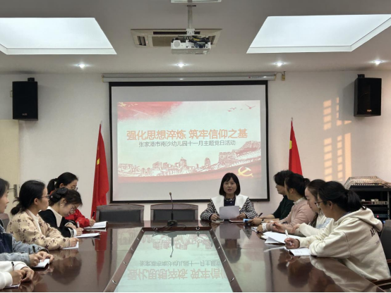 为深入推进学习贯彻习近平新时代中国特色社会主义思想走深走实,引导广大党员进一步深化思想认识,实干担当,践行宗旨,2023年11月23日,张家港市南沙幼儿园党支部开展了十一月主题党日活动——书记讲党课。会议由党员教师尹春迪主持,全体党员和入党积极分子参加了此次活动。